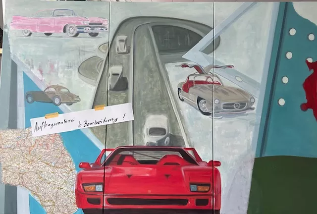 Ob Oldtimer, Sportwagen, Motorrad, Boot oder ein Fahrzeug mit persönlicher Bedeutung – sie gestaltet ein einzigartiges Gemälde auf Leinwand in Oel oder Mixed-Media, das Ihre Begeisterung sichtbar macht.