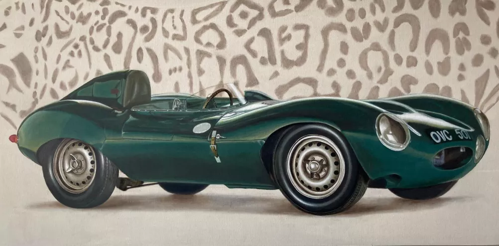Jaguar D-type 1954 Öl auf Leinwand 60x120cm Verkauft